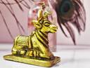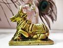 This statue depicts Nandi in a sitting posture and should be a marvelous addition to your home. Nandi represents the creative energies of the restless mind brought under control by focusing on Shiva who is Pure Consciousness. Kneeling in reverence and worship waiting to serve his Lord Shiva the Nandi is a symbol of purity and strength. This brass Nandi radiates its own inner strength and divine energy.