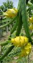 Dragonfruit stems are scandent (climbing habit), creeping, sprawling or clambering, and branch profusely. There can be four to seven of them, between 5 and 10 m (16 and 33 ft)or longer, with joints from 30 to 120 cm (12 to 47 in) or longer, and 10 to 12 cm (3.9 to 4.7 in) thick; with generally three ribs; margins are corneous (horn-like) with age, and undulate.