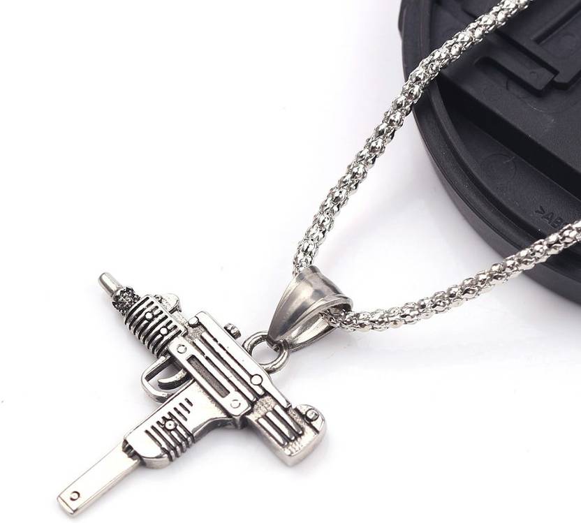 Cool Gothic Hip Hop UZI Kolye GUN Shape Pendant Necklace for Unisex