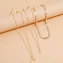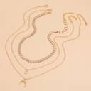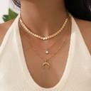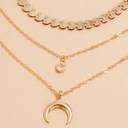 Arzonai three-layered clavicle chain moon crescent rhinestone pendant necklace Metal Layered