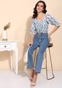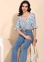 Turn heads with this effortlessly chic ruched crop top! Featuring a flattering drawstring detail that lets you adjust the fit, this top blends style with comfort. The soft, breathable fabric is adorned with a dreamy mix of blue, brown, and white hues, creating a trendy abstract pattern. With puffed sleeves and delicate ruffle accents, this top is perfect for a casual day out or a fun evening with friends. Pair it with high-waisted jeans or a skirt for a look that’s both playful and stylish!