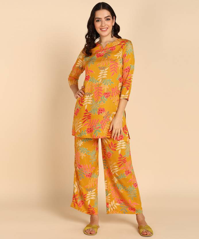 This co-ord set gives you a comfortable and soft feel, so you can wear it all day long. The pants are constructed with the trending style and the top offers you casual look. This cord-set is a best buy for your summer collection, which is an ultimate go-to statement attire for day to day look. Made from premium quality fabrics, this kind of co-ord sets for women stylish are a major trend these days.