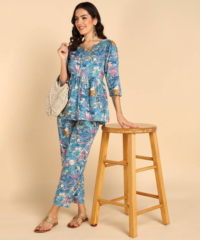 Sporting a botanical printed pattern, this women's co-ord set offers a stylish look that traditional charm with modern fashion. The nature-inspired prints create a visually appealing design, making it a great choice for various occasions. Whether worn as a coordinated ensemble or styled separately, the vibrant prints enhance its overall elegance.