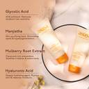 Boasting a blend of key ingredients, this face cleanser includes glycolic acid, a powerful AHA exfoliant, which works to remove stubborn tan over time. Manjistha, a skin-purifying herb, diminishes spots and hyperpigmentation, while mulberry root extract provides antioxidant-rich flavonoids to soothe irritation and even out the skin tone. Additionally, hyaluronic acid offers deep hydration, plumping the skin and restoring moisture for a healthy, smooth feel.