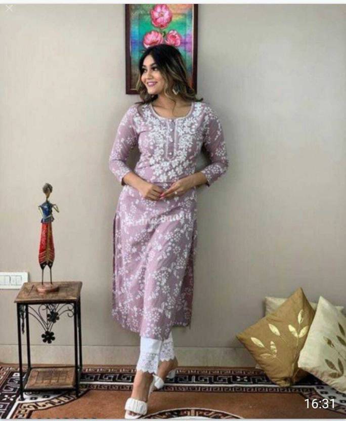 Women Printed Viscose Rayon A-line Kurta (Purple)