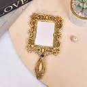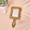 Ascension Beautifully Carved Square Shape Gold Plating Metal Hand Mirror