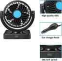 Low Energy Consumption - 12v fan With DV power of 12V/8-15W consumes less energy than air conditioner, Compact Design can meet the needs of several people. Low Noise - 100% pure copper motor offers strong cool and quiet wind, 12v fan will not disturb the normal rest. Plug and Play - Cooling air fan with 360 degree rotatable and 2 speed, adjustable design making it use more conveniently. Compact Size - Mini electric car fan don't take up space and will not cause visual blind spot. Adhesive pads help to firm it on dashboard or the seat armrest area. Can be used indoor or outdoor.