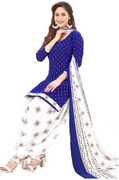 Womens Crepe Printed Unstiched Dress Material. Add style to your Daily Wear Collection with this Printed Dress material Salwar suit. 1 Unstitched Salwar, 1 Unstitched Top, 1 Dupatta.Top & Bottom Fabric : American Crepe, Dupatta Fabric : Martina You can use it for daily wear purpose it will give you immense comfort and fresh styling look.