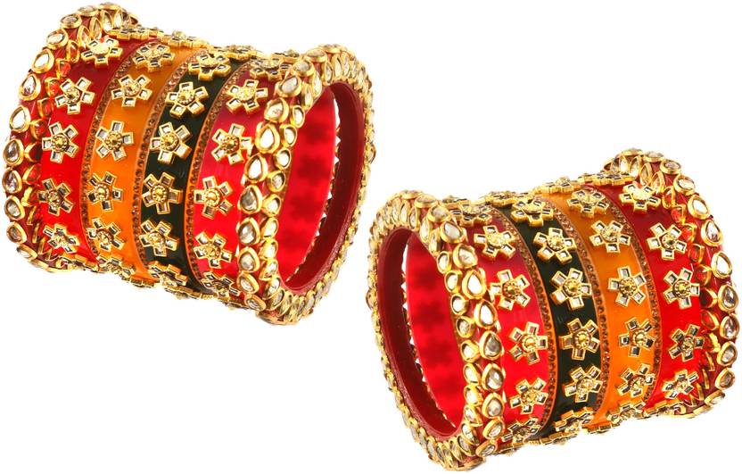 Rajasthani Traditional Handmade Unique Pattern Chuda, Kundan Bangles Bridal Chuda Set for Girls & Womens
