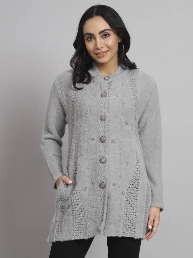 This model is wearing a 'L' or 'Large' size, so please choose your size accordingly. Women's woolen Coats are available in sizes ranging from Small to 3XL. This cardigan is a must-have for every lady's winter wardrobe.