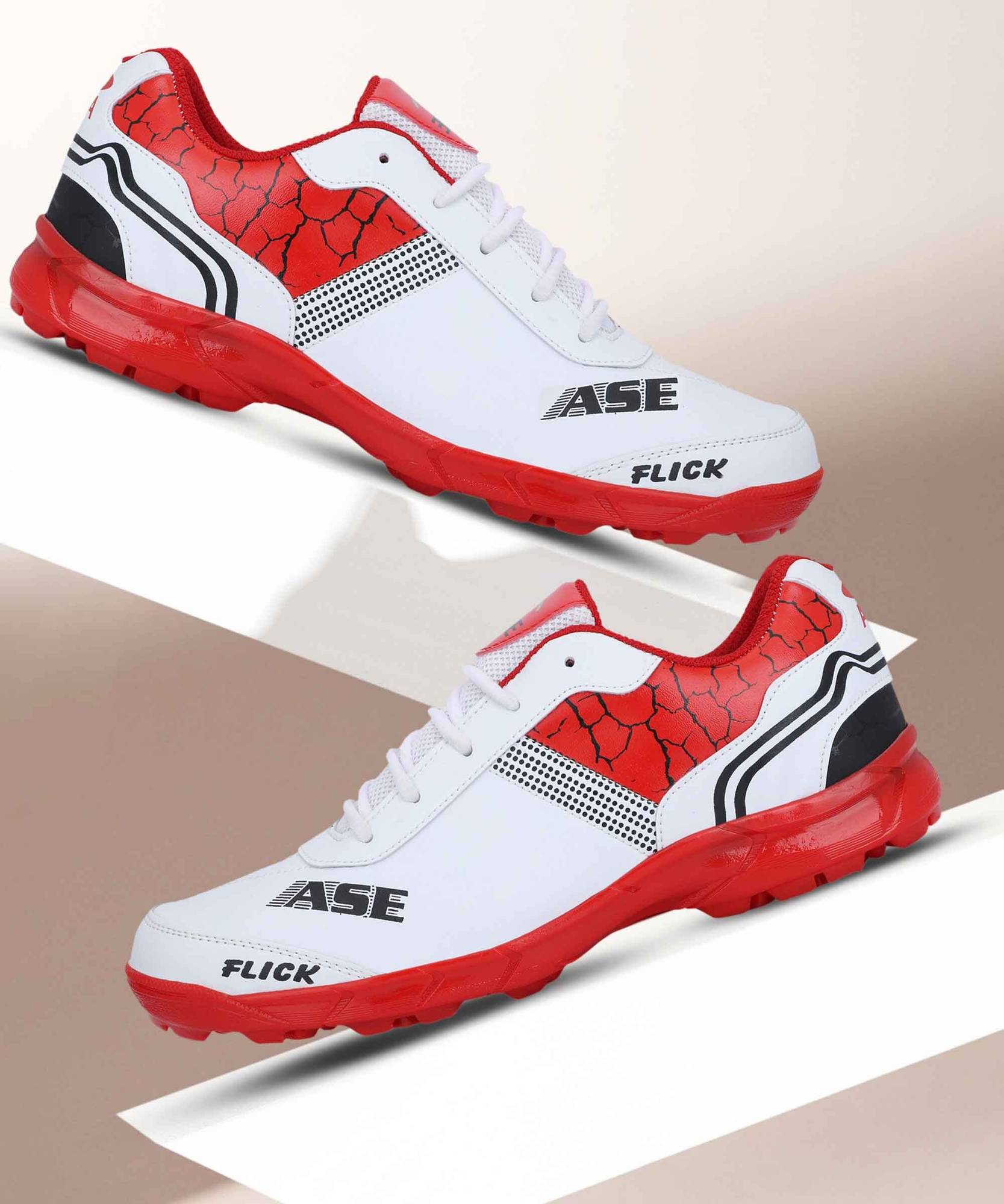 ASE Understand the needs of cricketers on field, we have prepared this shoe with improved cushioning and stability for better grip we use Dual Closure, Laces and Strap in ground field, perfect in weight for bowlers, batsman and fielder. ANKLE PROTECTION : High cut design gives full support to your ankle for bowling, running and keeping. Say Goodbye to painful ankle rash and cuts!! ALL-SEASON SHOE: understanding the surface of field in all different seasons we have prepared full PVC spike easy grip shoe to fight with all weather conditions.