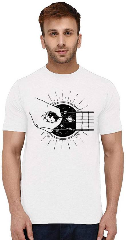 Aseria Men's Cotton Graphic Printed Half Sleeve T-Shirt - Galaxy Guitar (White, MD). Men's Cotton Half Sleeve T-shirt. Here is a range of clothing with graphics printed T-shirts that helps you to express yourself. Made from 100% Cotton, it is an all seasons comfort wear. Funny, quirky and humorous designs are bound to add conversations. In addition to that, the fabric is comfortable in high humid conditions. You can pair our T-shirts with trousers and denim of your choice and make it a weekday smart casual or weekend casual party wear. The print is light weight and keeps the T-shirt airy. Our printing technique helps it to last very very long. Printing: Screen printing that will last very long. The printing is done in-house to ensure quality and consistency Colours are added in layers to ensure they look bright on all fabric.