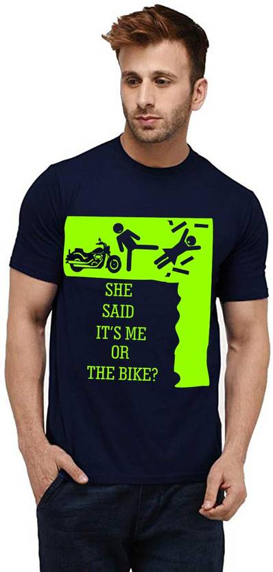 She Said It's Me Or Bike Men Printed Round Neck Pure Cotton Dark Blue T-Shirt