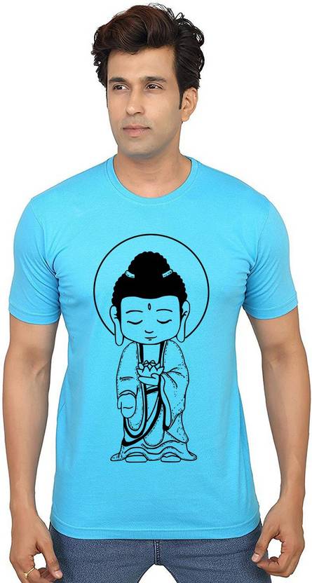 Aseria Printed Men Round Neck Light Blue T-Shirt