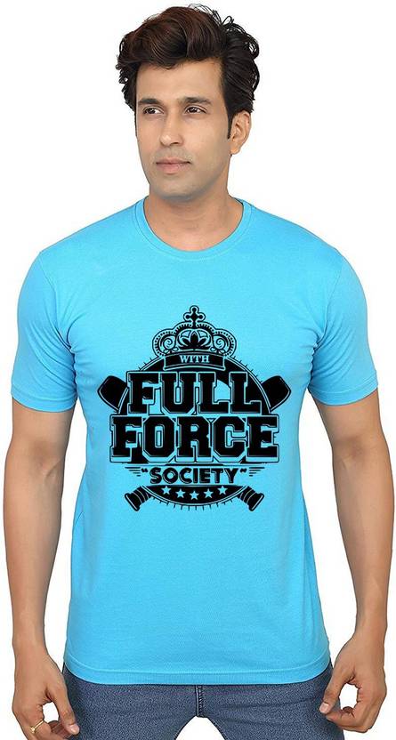 With Full Force Society Men Typography Round Neck Pure Cotton Light Blue T-Shirt
