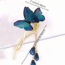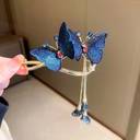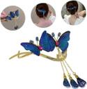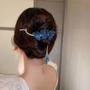 1pcs Double-Sided Embroidered Blue Butterfly Tassel Hair Bun Twist Clip