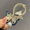1pcs Pearl Rehinestone Retro Style Embroidery Butterfly Decorative Hair Clip