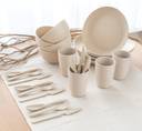 The dinnerware set is made from natural wheat straw fiber and PP material.