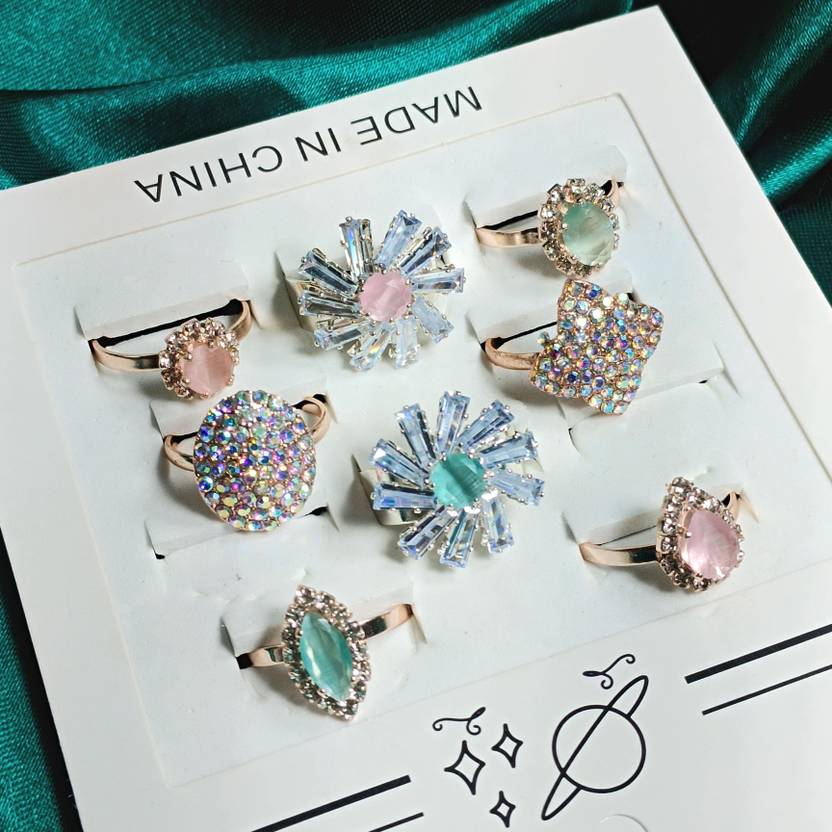 Combo Of 8 Colorful Rhinestone Ring for girls Adjustable Finger Ring For Women Fashion Bulk Rings design