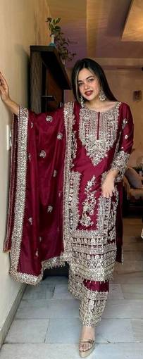 Women Chanderi Kurta Pant Dupatta Set