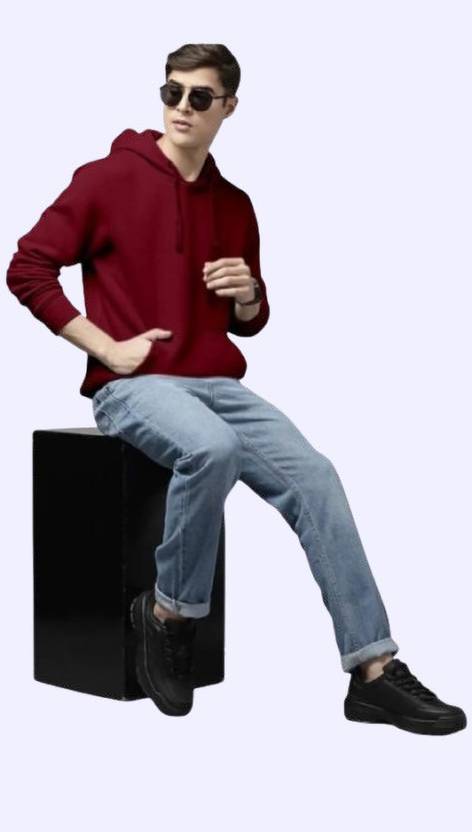 Men Full Sleeve Solid Hooded Sweatshirt