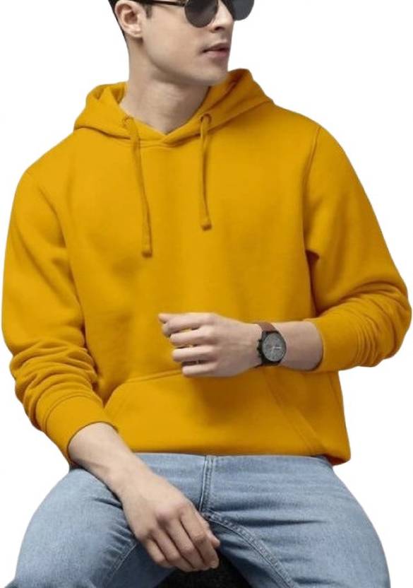 Men Full Sleeve Solid Hooded Sweatshirt