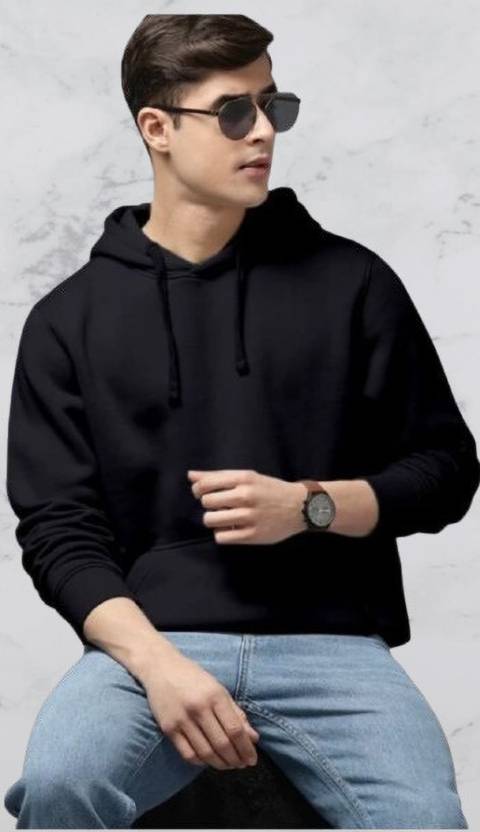 Men Full Sleeve Solid Hooded Sweatshirt