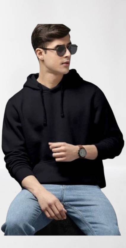 Men Full Sleeve Solid Hooded Sweatshirt