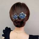 Ashkash 1pc Crystal Flower Lazy Hair Curler Deft Bun Maker Bun Clip (Blue)