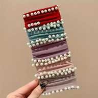 Ashkash 4pcs Elegant Beaded Mask Fabric Hair Ties Scrunchies with Imitation Pearls Rubber Band (Multicolor)