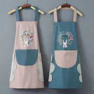 Thanks to their embroidered detailing, these aprons add a cheerful touch to daily kitchen tasks while remaining visually balanced through a soft colour-block pattern. Featuring a playful bunny motif framed by vibrant floral accents, they may evoke a sense of warmth and light-hearted charm. Designed to combine function with style, these aprons can enhance both cooking and cleaning experiences with a dash of personality.
