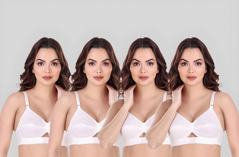 ASHMIRAS Pack of 4 Women T-Shirt Non Padded Bra (White)