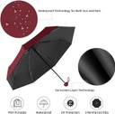 foldable umbrellas for men, women are designed with you in mind and built to ensure the ultimate protection and comfort in any weather condition. Measuring just 42 inches long when folded and lightweight for easy storage in purses, briefcases, backpacks, and more. Travel Umbrella is fortified with 9 resin-reinforced fiberglass ribs that flex slightly to withstand powerful gusts without turning inside out and defends against the elements like no other umbrella. A useful addition to any travel bag, backpack, or briefcase, this compact automatic travel umbrella helps keep you dry when the skies turn dark and the pouring rain begins. From warm Spring showers to fierce Fall storms and unruly wind tunnels, the umbrella makes for a great take-along companion when you need to get from here to there without getting drenched. Built to last through many rainy seasons, year after year, the compact automatic travel umbrella features durable steel construction with a canopy made of reliable, waterproof pongee fabric. Sturdy, yet lightweight, the umbrella helps get you where you're going without having to worry about the weather. Thoughtfully designed, the umbrella's canopy automatically opens and closes with the simple touch of a button. Push the button to open; push the button to close. After the canopy collapses, manually pull the upright support down into the locked position. With the umbrella back in its base, the auto-open mechanism is ready to be used again. The compact automatic travel umbrella includes a slip-on sleeve, which helps keep the umbrella neatly stored. The storage sleeve fits securely around the closed-position umbrella, and lifts off easily when it's time to take cover and venture outside. The umbrella comes equipped with a soft, secure-grip handle, which helps ensure a comfortable hold, whether casually window-shopping downtown or dashing from your car to the front door. A wrist strap at the end.