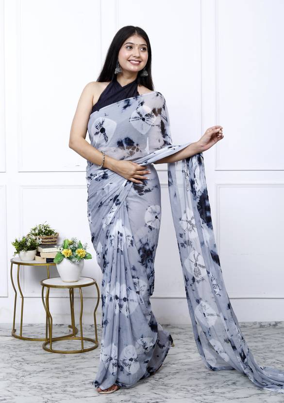 HouseOfCommon Digital Print Handloom Chiffon Saree (Grey)