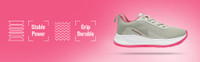 Boasting a breathable, lightweight upper, these women’s shoes allow air to flow around the foot, supporting ventilation throughout wear. The structure encourages a snug yet gentle fit, reducing discomfort caused by heat or tightness. In addition, the base features a grip that holds well across different surfaces, contributing to a steady feel during walking, training, or jogging. The light material allows for natural flexibility, and the supportive build helps ease strain, especially during extended use.