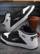 asian Flat Sole Sneakers Shoes for all Day wear with Memory Cushion Footbed High Tops For Men (Black, White , 6)