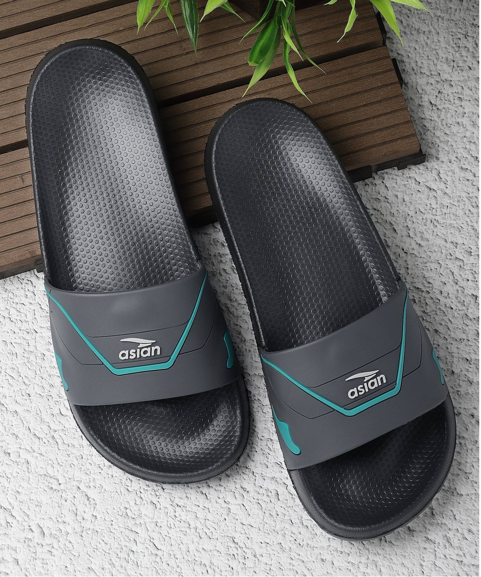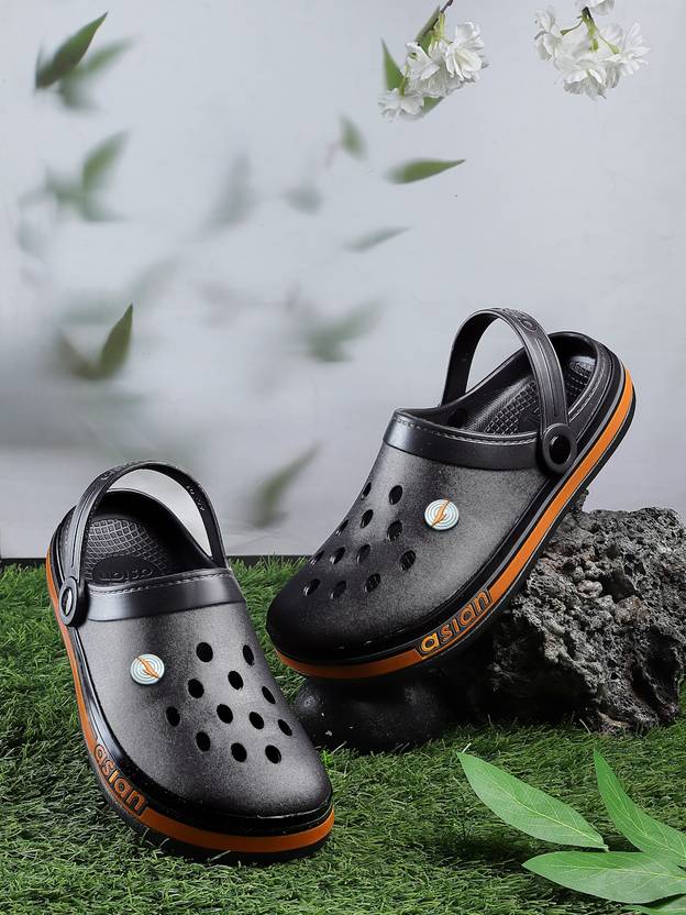 asian Men Clogs Sandal (Grey, Orange , 8)