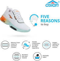 asian Oxygen-01 dual capsule technology Latest Stylish Casual Lace up lightweight Running Shoes For Men (White , 10)