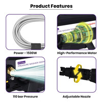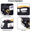 This pressure washer is packed with advanced features designed to enhance its performance and user experience. It boasts a waterproof switch for safe operation in wet conditions, a strong handle for easy portability, and robust metal construction for durability. The water intake system allows for seamless connection to water sources, while the triplex pump head ensures efficient water flow and pressure. With an induction motor at its core, the TruCare 1500 W delivers powerful and consistent performance, making every cleaning task quicker and easier.