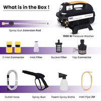The Asian Paints TruCare 1500 W Pressure Washer isn't just a machine; it's a complete cleaning solution. This powerful device comes with an extensive range of accessories that enhance its functionality. The package includes a 1500 W pressure washer unit, a spray gun with an extension rod, two inlet connectors, an inlet filter, a bucket filter, a tap connector, an outlet hose, a foam spray bottle, and a 2-meter inlet pipe. Each accessory is designed to optimize the cleaning process, making every task from car washing to patio cleaning a breeze.