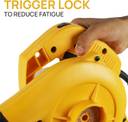 This air blower with a trigger lock offers ergonomic benefits that enhance user comfort and reduce fatigue. The trigger lock feature allows you to lock the blower in the 'on' position, eliminating the need to continuously press the trigger during prolonged use, reducing hand strain and fatigue. The blower's design includes an ergonomic handle with a comfortable grip, promoting natural hand positioning and minimising wrist strain. Additionally, the lightweight construction and balanced design ensure easy handling and movement, further reducing user fatigue during extended operation. The ergonomic design of this air blower prioritises user comfort and efficiency.