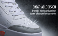 Owing to their cushioned midsole, these sneakers provide added comfort with every stride. The EVA layer helps absorb shocks and eases the load on knees and ankles. Furthermore, the non-slip outsoles enhance grip across different surfaces, supporting stable steps. The sole is made of PVC, known for its lightness and ease of motion, while the outer synthetic finish remains simple to care for and holds up well with regular use.