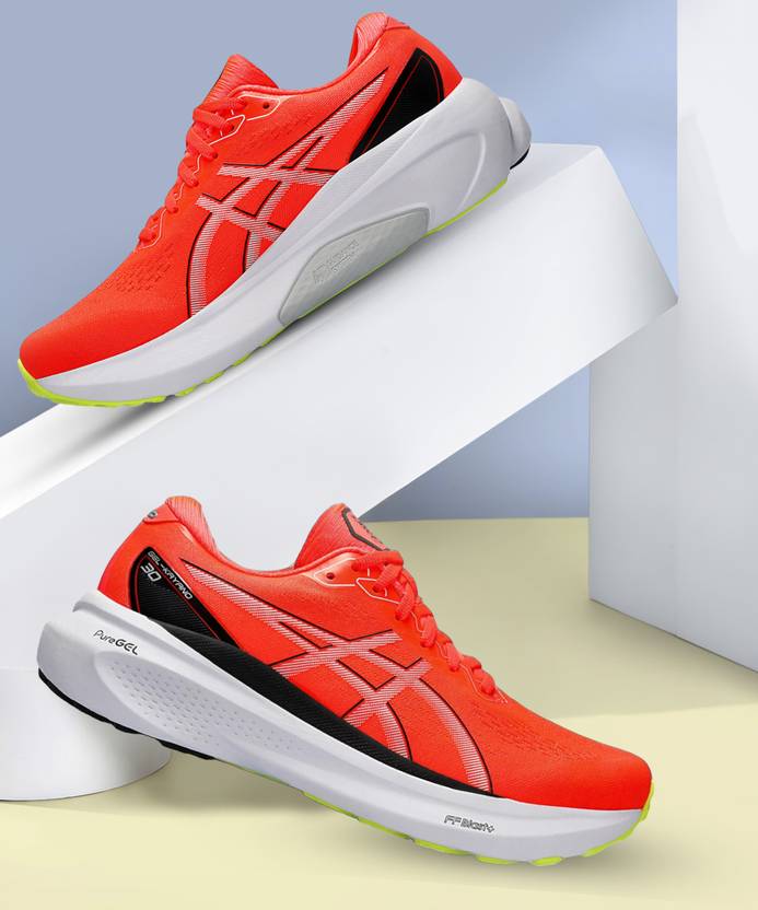 From 5Ks to full marathons, the GEL-KAYANO™ 30 shoe is designed to provide advanced stability and cushioning properties with less weight. The new 4D GUIDANCE SYSTEM™ helps provide adaptive stability via the shoe's wider basenets, increase heel bevel/forefoot flare, and arch recovery pod.. Placed on the inside of the midsole, this adaptive foam helps position your arch for a more balanced stride. We also updated the midsole with FF BLAST™ PLUS ECO cushioning. With approx. 24% bio-based content, this material helps create cloud-like softness in every step. PureGEL™ technology is strategically positioned below the heel and is 65% softer than standard GEL™ technology. Now you can make your distance training feel surprisingly smooth.