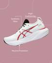 The GEL-NIMBUS™ 25 shoe is a neutral trainer that creates a plush underfoot to help you feel like you're running on clouds. Thanks to its raised stack heights and new cushioning features, this shoe improves your underfoot cushioning experience. A soft knit upper comfortably wraps your foot while supplying advanced ventilation. Its updated knit tongue construction provides better flexibility and extends around the ankle for a more luxurious fit and feel.,The midsole is packed with the most cushioning that the series has offered to date. By adding more FF BLAST™ PLUS cushioning and positioning our new PureGEL™ technology in the heel, this trainer creates a lighter and softer cushioning experience.