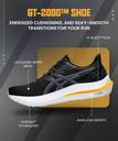 The GT-2000 12 shoe is a versatile stability trainer that's functional for various distances. We've reimagined this workhorse running style with less weight and a smoother heel-to-toe transition. The midsole is updated with a full-length FF BLAST PLUS cushioning unit and PureGEL technology. These features help provide a more energized toe-off with cloud-like softness underfoot. Meanwhile, the 3D GUIDANCE SYSTEM consists of wider basenets and an increased heel bevel/forefoot flare. As a result, you'll experience a silky-smooth transition from footstrike to toe-off.