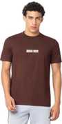 Men Solid Round Neck Cotton Blend Brown T-Shirt