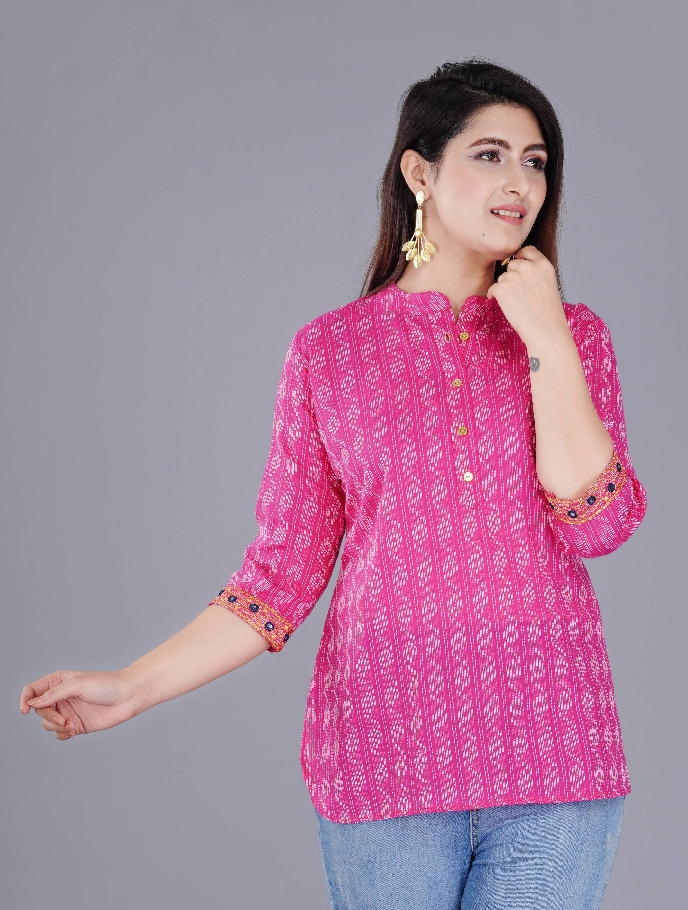 Yeh kurti lightweight, skin-friendly aur easy-to-maintain fabric me banayi gai hai, jisse aap ise har season me comfortably pehen sakte ho. Pair it with leggings, pants, or jeans for a versatile, stylish look. Yeh product specially daily wear, office wear aur casual occasions ke liye ideal hai.