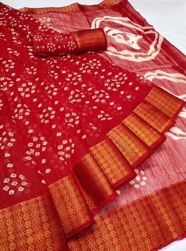 aslisanskriti Printed Kanjivaram Cotton Blend Saree (Red)