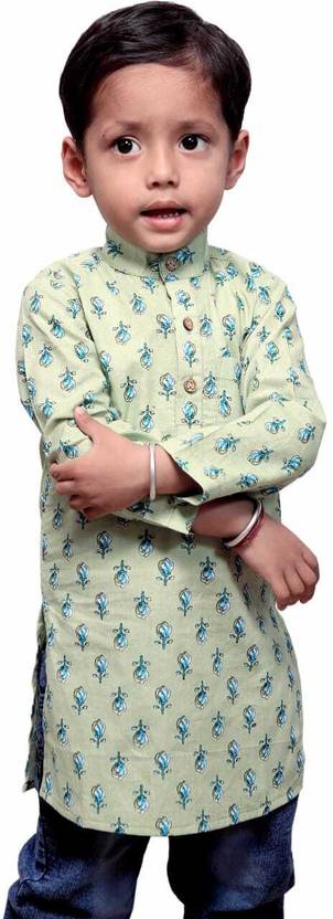 Boys & Girls Printed Pure Cotton Straight Kurta (Light Green)