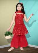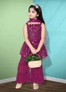 ASonamoni Dresses Girls Festive & Party Angarkha and Sharara Set (Blue Pack of 1)